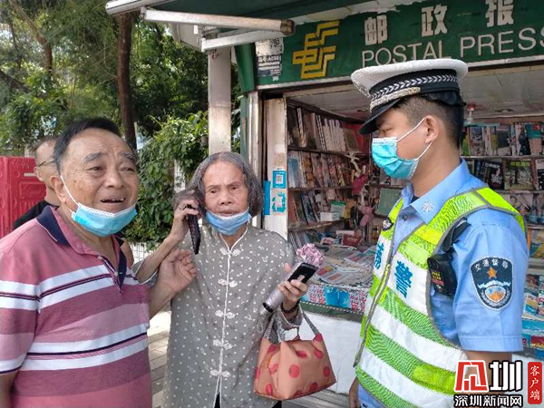 罗湖交警了解情况后询问老人是否知道家人的联系方式,老人这才恍然大悟,想起自己随身携带着手机,只是不太会操作。陈林灶赶忙接过这部老人机,拨通号码联系到了老人的女儿。