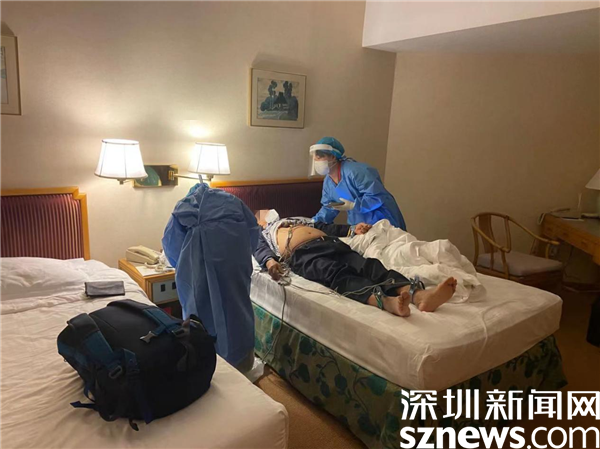 医护人员正在为陈先生进行身体检查。