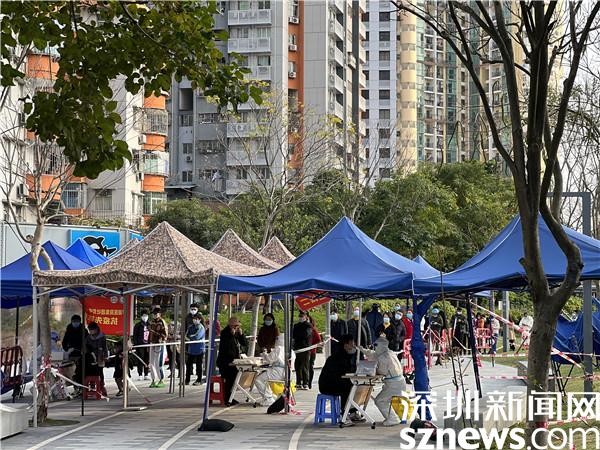 目前,罗湖区仍在开展大规模核酸检测,各大临时检测点有序开放中。