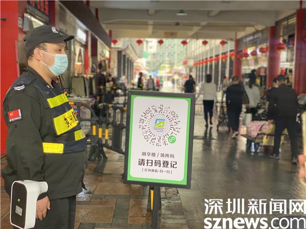 在明华广场几百米处的东门文化广场的核酸检测点,新一轮的核酸检测正在开展,“请提前扫码出示粤核酸,戴好口罩,保持间隔排好队……”志愿者们引导市民有序进入检测。记者了解到,明华楼市场恢复营业后,东门商业街区管理部门加强常态化防控,做好各项措施,督促步行街区商家压实防疫主体责任,通过“东门步行街商家自治微信工作群”及电话提醒等方式,要求各商厦严控大型活动、人群聚集,本物业商铺店员严格落实戴口罩,对进店顾客扫码、测温及登记。