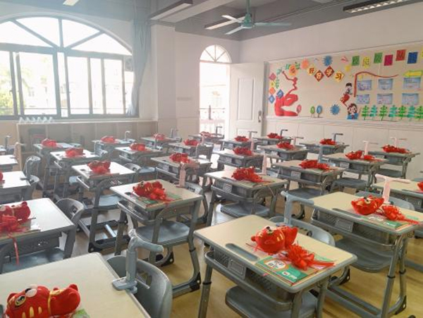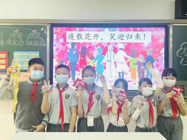 502班的返校仪式“爱意浓浓”。红色拉花让每个孩子都喜气洋洋;桌上班主任老师亲手折的小礼盒和各式各样的糖果让孩子们甜蜜加倍;还有暖心“红包”,里面有老师们一笔一画书写给孩子们的惊喜,更是寄托了无限的关心与激励。