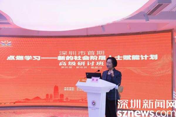 读特客户端·深圳新闻网2022年5月8日讯(记者 谢秋平 通讯员 刘瑞群)5月8日,由中共深圳市委统战部主办,中山大学深圳研究院承办的深圳市首期“点燃学习——新的社会阶层人士赋能计划”高级研讨班(以下简称“点燃学习班”)的学员们开启了2022年第二阶段学习。本次课程特别邀请了深圳市人大常委、原深圳市科技创新委员会党组成员、一级巡视员邱宣主讲《奋进新征程,创新大发展》。