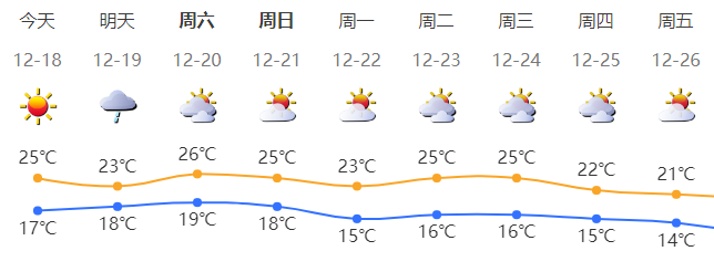 深圳今日晴天间多云,空气干燥;气温17-25℃;东北风2-3级;相对湿度40%-70%。