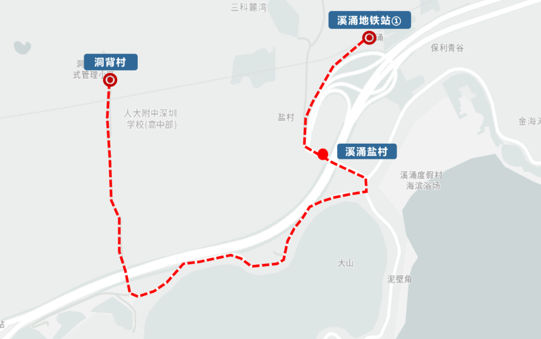 溪涌地铁站①、溪涌盐村、人大附中高中部、人大附中高中部、溪涌盐村、溪涌地铁站①