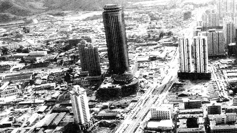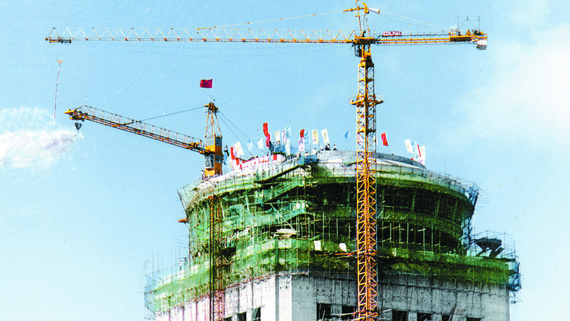 1984年2月,兴建中的国贸大厦