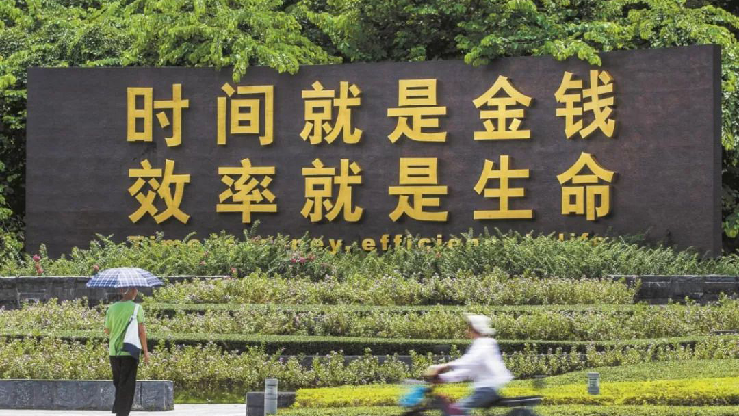 蛇口时间广场上矗立着“时间就是金钱,效率就是生命”标语牌