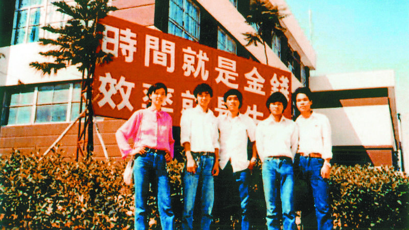 20世纪80年代初,蛇口青年工在标语牌下留影