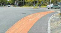 为了减少因“死亡弯月”等因素引发的交通事故,日前,南山和龙华的部分路口试点设置了“危险区域,行人非机动车禁入”的黄色警示带,最外围还设置有振荡标线和反光道钉。