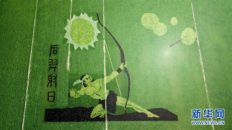 这是7月29日在安徽寿县安丰塘水库北堤拍摄的“稻田画”(无人机拍摄)。