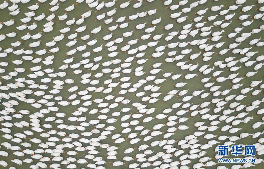 这是小岗村一处养殖鸭子的水塘(9月16日无人机拍摄)。 新华社记者 才扬摄