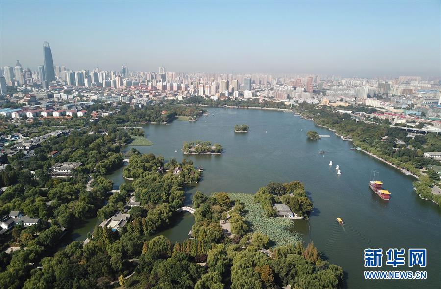 这是免费开放的济南市大明湖景区(9月30日无人机拍摄)。近年来,山东积极推进国有景区免费开放工作,截至目前,山东实现免费开放的国有景区已达286处。新华社记者徐速绘摄