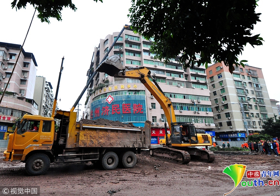 四川达州一人行道塌陷致2人死亡 救援仍在进行