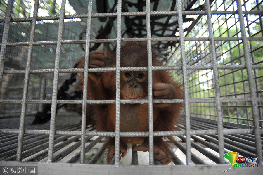 当地时间2018年9月18日,印尼加里曼丹克塔邦,国际动物救援(IAR)猩猩安全与保护中心里。图片作者:Newscom