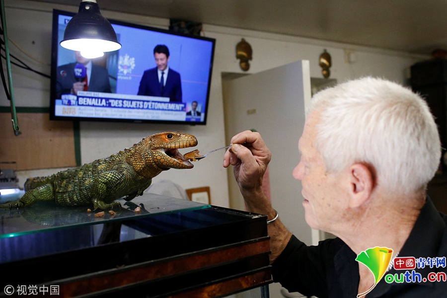 中国青年网北京9月21日电 当地时间2018年9月19日,法国67岁的法国男子Philippe Gillet与400多只爬行动物生活在一起,有鳄鱼、蜥蜴、眼镜蛇等等。
