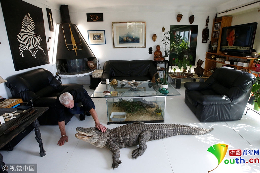Philippe Gillet将短吻鳄从小养大,在家里允许它们肆意走动,就如同我们的家养猫猫狗狗一样。