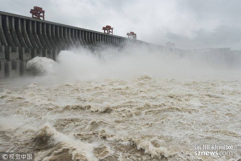 深圳新闻网讯 2018年7月5日,三峡大坝今年首次开闸泄洪。当天,三峡大坝开启5个泄洪孔下泄洪水,至中午12点左右减至2个。