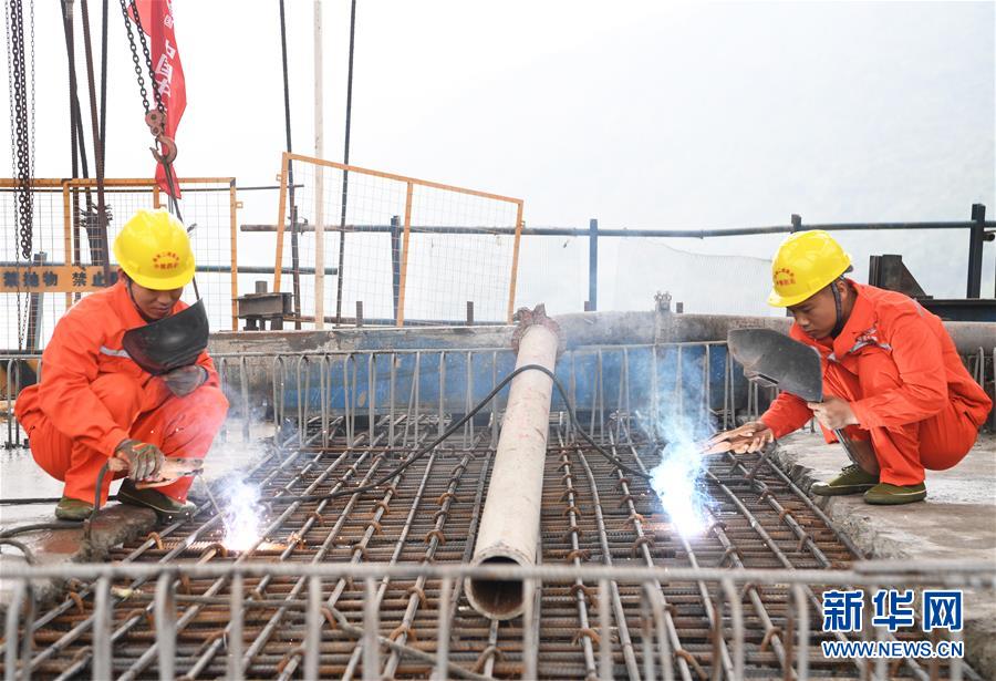 10月23日,在重庆涪陵,施工人员在渝怀铁路涪秀二线重点工程——乌江右线大桥主跨合龙现场作业。 当日,由中铁四局承建的渝怀铁路涪秀二线重点工程——乌江右线大桥主跨成功合龙,标志着大桥主体工程全部顺利结束。乌江右线大桥项目全程460.1米,主跨192米,跨越乌江和319国道。在两年多的建设过程中,施工人员攻克了“不等高墩”“不对称边跨”“边跨入隧”等多个技术难题。 新华社记者王全超摄