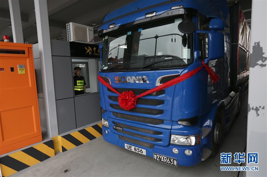 10月24日,港珠澳大桥珠海公路口岸通车首票出口货物抵达一站式货车出境验放通道。当日9时,港珠澳大桥正式通车。 新华社记者张加扬摄