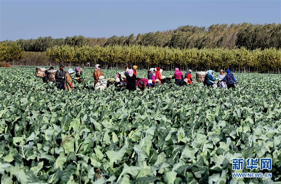 10月29日,乐亭县马头营镇马头营村的农民在收获菜花。 新华社记者杨世尧摄