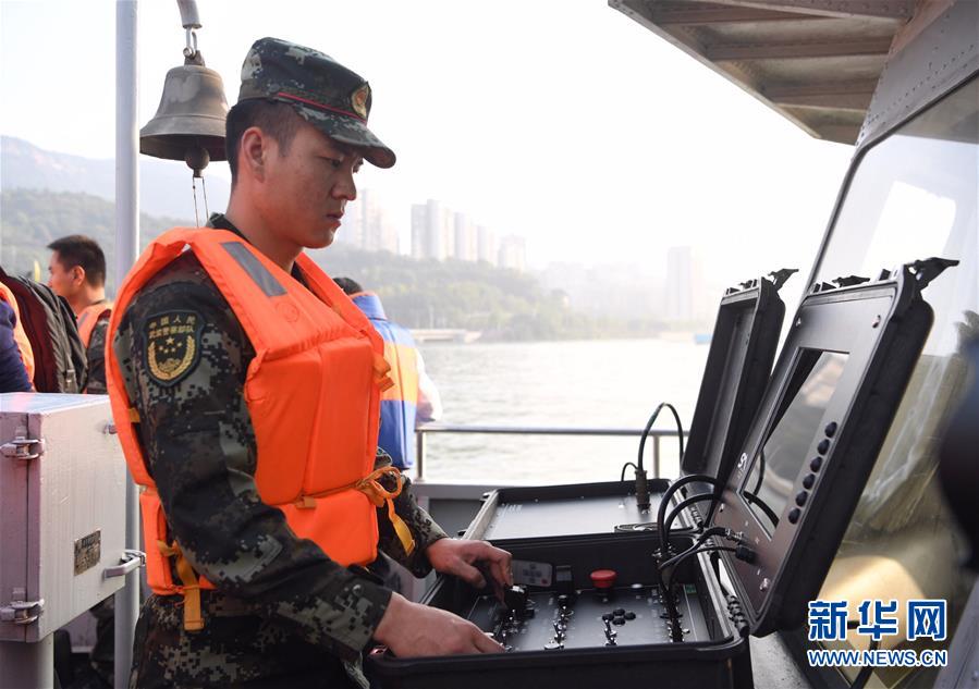10月28日,武警重庆市总队船艇支队队员在操作水下机器人系统进行搜救。