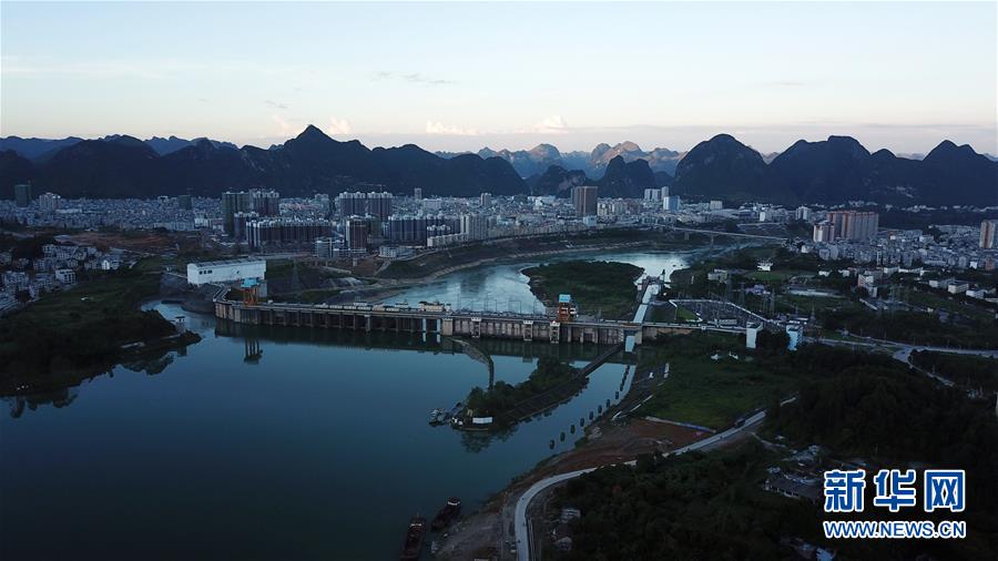 这是位于广西大化县境内的大化水电站(9月19日无人机拍摄)。广西红水河是我国十二大水电基地之一,目前建有天生桥一级、天生桥二级、平班、龙滩、岩滩、大化、百龙滩、乐滩、桥巩、大藤峡10个大型梯级电站及下游西江上的长洲水利枢纽。这些水电站既是我国“西电东送”的主力军之一,又对珠三角地区远离洪灾侵袭有着重要的调节功能。近期,新华社记者用无人机从空中俯瞰这些水电基地群,呈现它们的别样之美。新华社记者 张爱林 摄