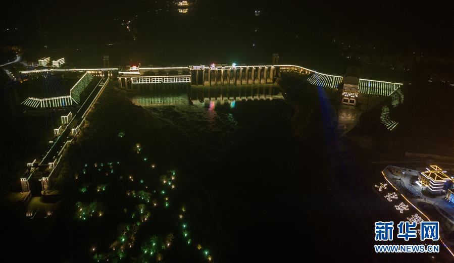 这是位于广西大化县境内的大化水电站夜景(10月21日无人机拍摄)。广西红水河是我国十二大水电基地之一,目前建有天生桥一级、天生桥二级、平班、龙滩、岩滩、大化、百龙滩、乐滩、桥巩、大藤峡10个大型梯级电站及下游西江上的长洲水利枢纽。这些水电站既是我国“西电东送”的主力军之一,又对珠三角地区远离洪灾侵袭有着重要的调节功能。近期,新华社记者用无人机从空中俯瞰这些水电基地群,呈现它们的别样之美。新华社记者 张爱林 摄
