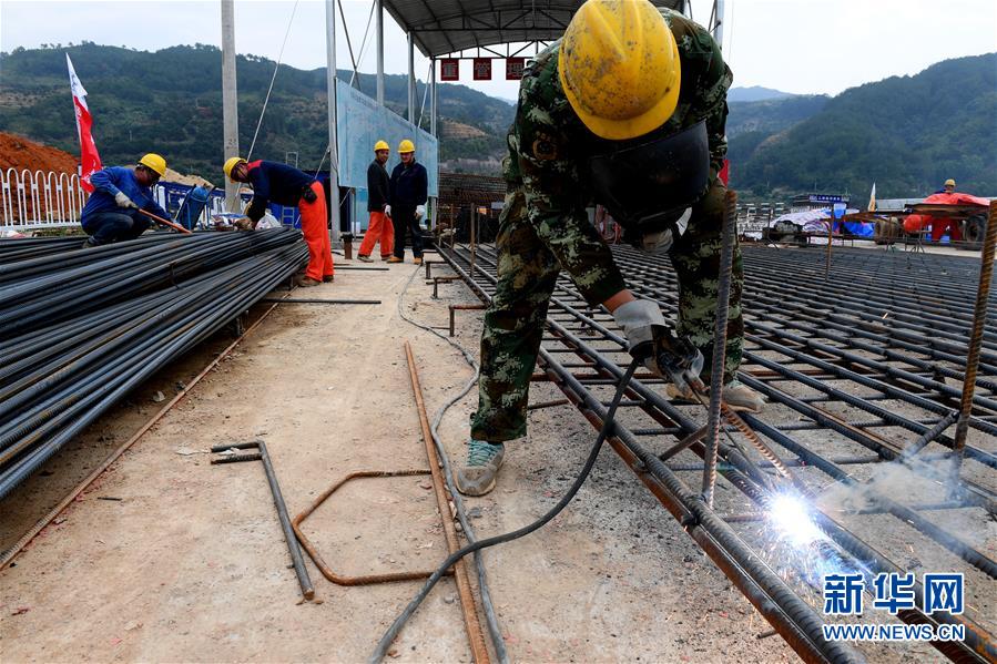 11月23日,建设者在福建闽江水口水电站坝下工程工地加紧施工。