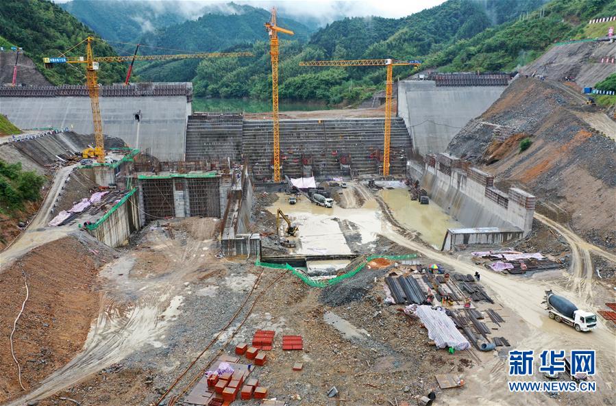 11月15日无人机拍摄的广西落久水利枢纽工程施工现场。目前,广西柳江防洪控制性工程落久水利枢纽工程各项建设进展顺利,主坝工程项目已完成总体建设的60%。落久水利枢纽工程位于广西柳江流域支流贝江下游,是一座以防洪为主,兼顾灌溉、供水、发电和航运等任务的综合性水利枢纽工程。新华社记者 周华 摄