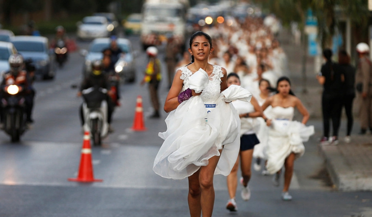 泰国新娘赛跑争免费婚礼 新娘街头提 ...