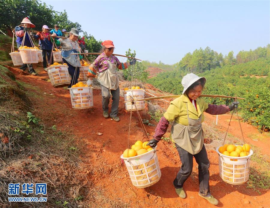 近日,江西省赣州市于都县近15万亩脐橙进入丰收采摘期,当地农户抓住晴好天气采摘,果园呈现一派繁忙景象。 新华社记者 胡晨欢摄