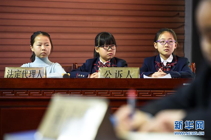 12月3日,银川市实验小学的学生在宪法日主题活动中体验模拟法庭。国家宪法日到来之际,各地学校纷纷举办主题宣讲活动,对学生开展法治教育,帮助孩子们了解宪法知识。新华社发(冯开华 摄)