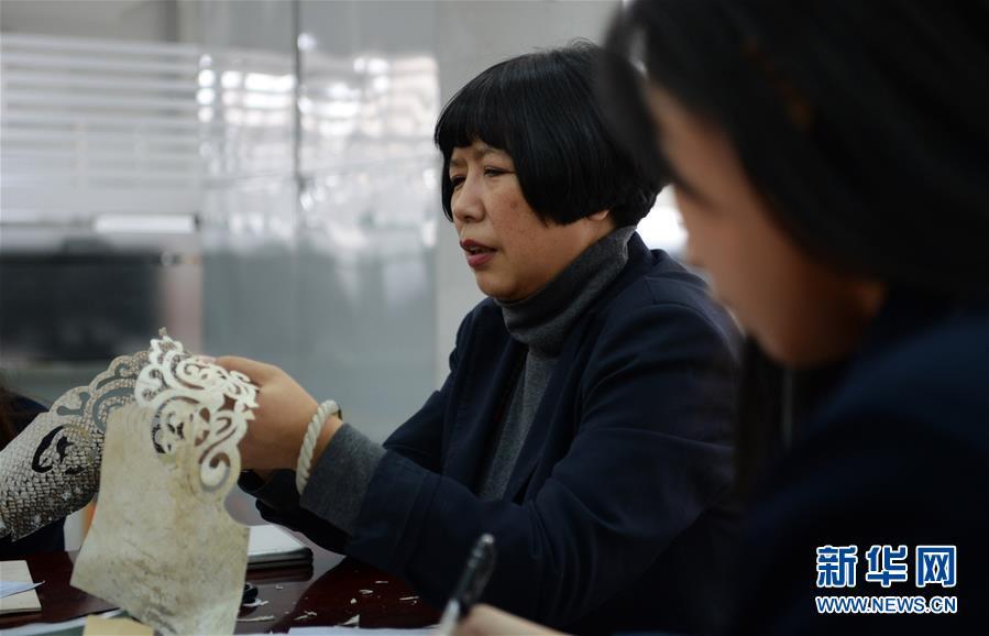 张琳在讲授鱼皮画制作技艺(2011年12月4日摄)。国家级非物质文化遗产赫哲族鱼皮制作技艺是我国赫哲族传统手工艺术。作为这项技艺的黑龙江省级传承人,十余年来,张琳一直从事鱼皮画的研究和创作,并通过做推广、开讲座、办活动,让更多年轻人了解并喜欢上这一传统手工艺,将这项濒临失传的艺术更好地传承下去。新华社记者 王凯 摄