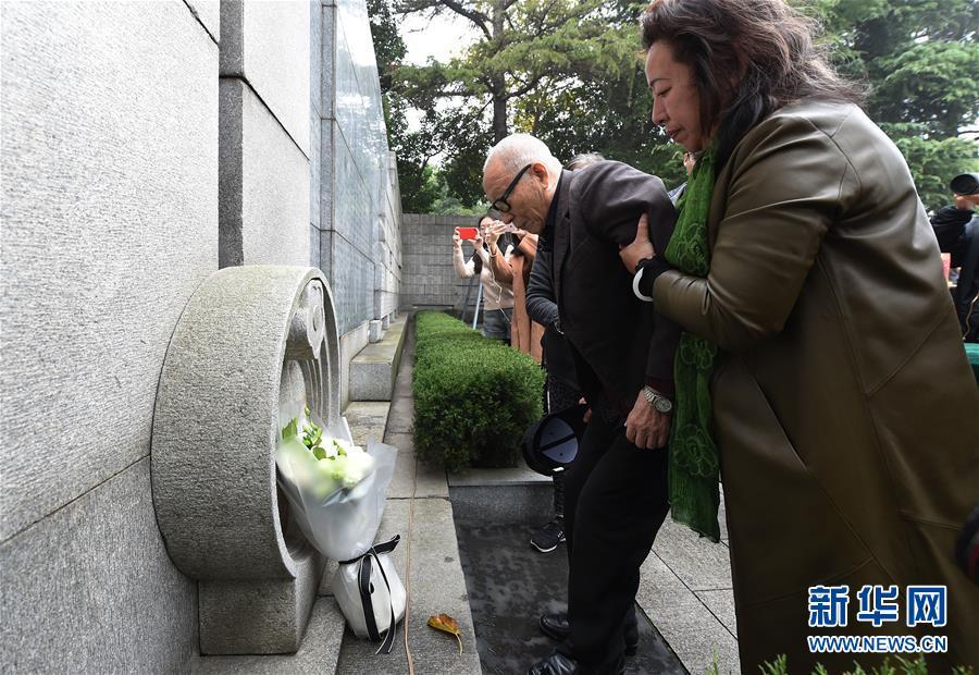 12月3日,南京大屠杀幸存者余昌祥(右二)率家属在死难者名单墙前鞠躬凭吊。 当日,在第五个南京大屠杀死难者国家公祭日到来之际,南京大屠杀死难者遗属家祭活动在侵华日军南京大屠杀遇难同胞纪念馆正式启动。首批前来开展家祭活动的南京大屠杀幸存者余昌祥、石秀英老人分别率家属在纪念馆内的死难者名单墙前献花、敬香、跪拜,并诵读家信,表达对亲人的哀思。 新华社记者 孙参 摄