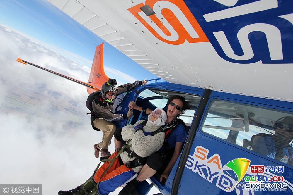 澳洲102岁奶奶玩高空跳伞 背后原因很暖心