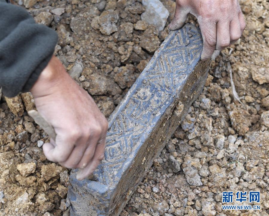 11月15日,工人正在清理出土的砖块。