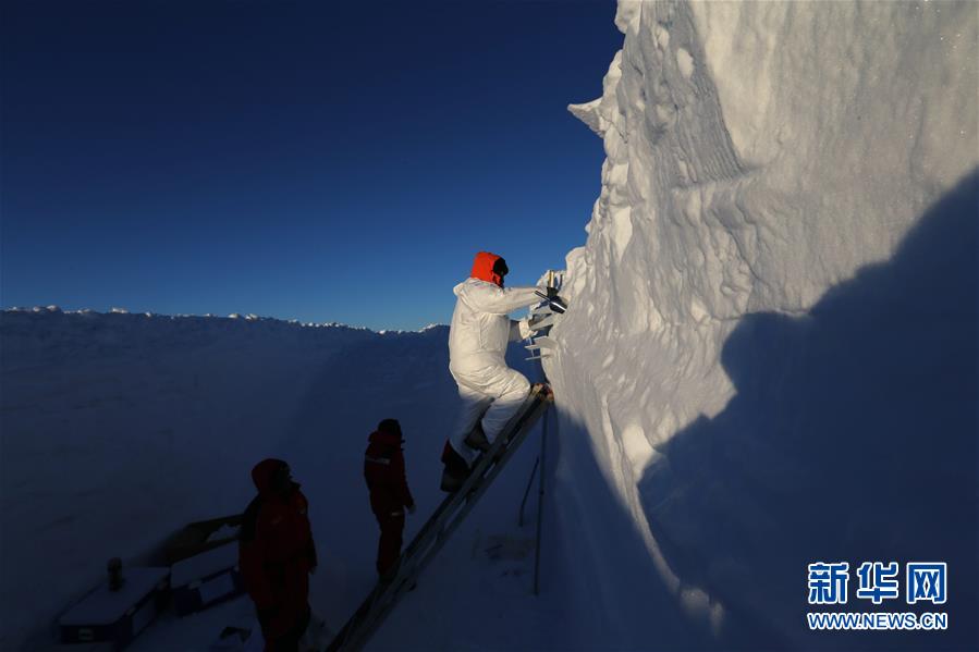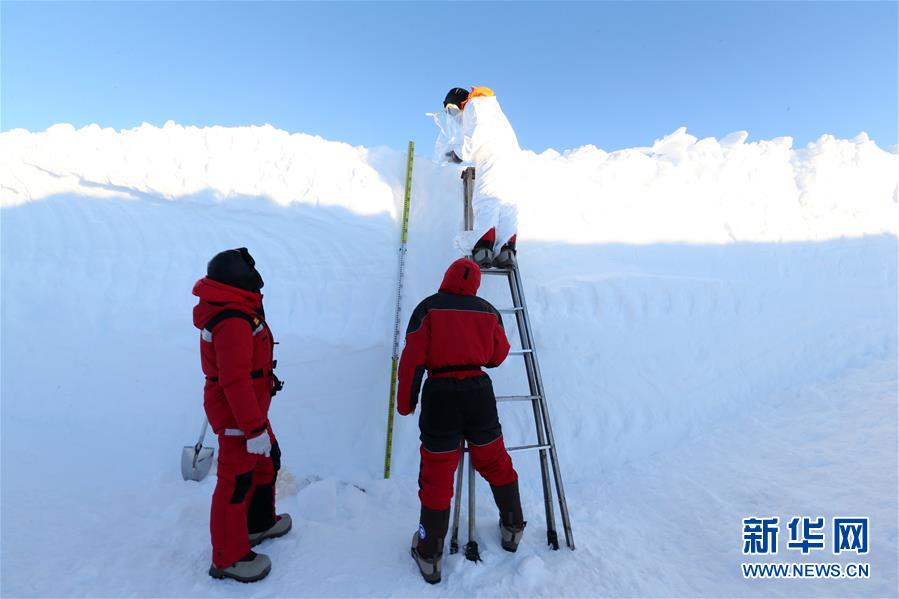 12月20日凌晨,科考队员进行本次科考中的首次雪坑样品采集。