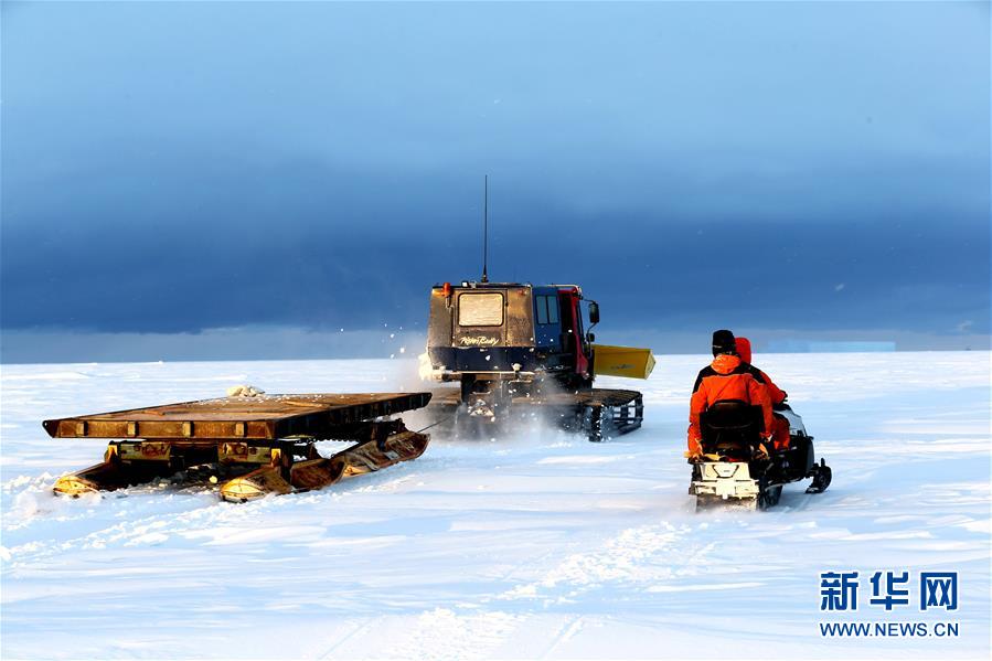 探冰小组成员开展海冰探路(11月30日摄)。 新华社记者 刘诗平摄
