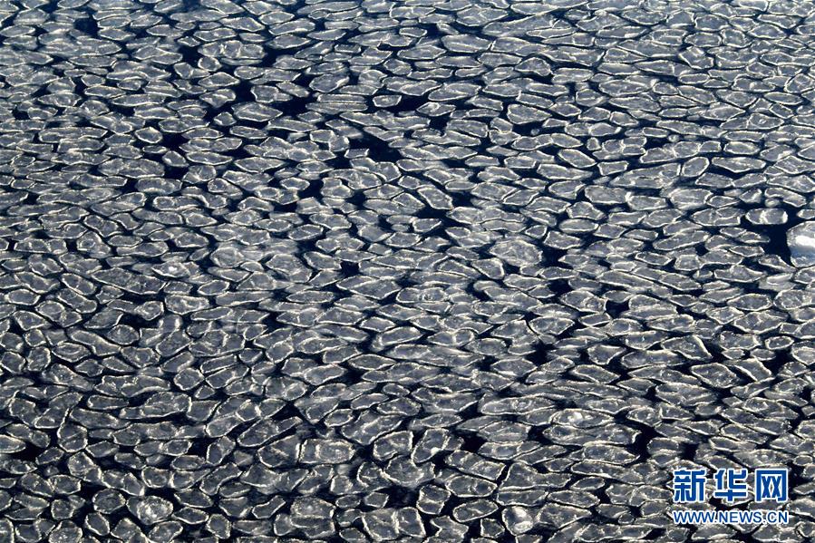 这是11月30日拍摄的普里兹湾海域的荷叶冰。 新华社记者 刘诗平 摄