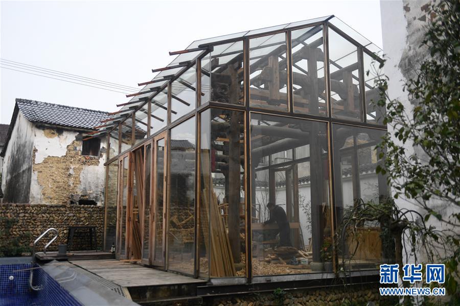 12月21日,工人在桐庐县江南镇深澳村修缮改造一间古宅。深澳村有保存完整的古建筑群落,常年吸引大批游客参观。新华社记者黄宗治摄