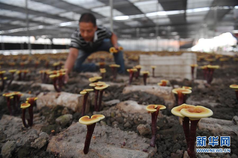 9月25日,在福建省南平市浦城县一家灵芝加工企业,技术员替精准扶贫户管理灵芝。 近年来,福建省南平市浦城县利用当地独特的生态资源,依托特色灵芝产业,发挥龙头企业示范作用,通过公司+基地+贫困户入股等方式,辐射带动17个乡镇约300户贫困户增收。 新华社记者 宋为伟 摄