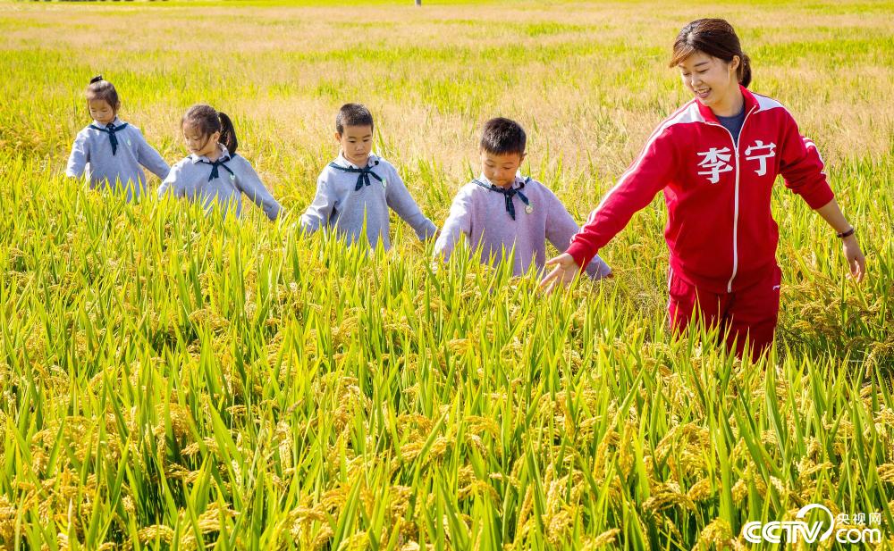 2019年10月15日,浙江省湖州市长兴县开发区实验幼儿园的老师带领孩子们走进稻田,感受丰收的喜悦。图片来源:视觉中国
