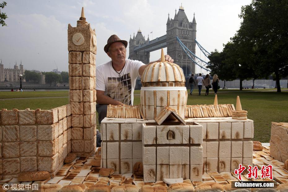 艺术家用面包等烘焙食品打造微缩伦敦地标建筑。图片来源:视觉中国