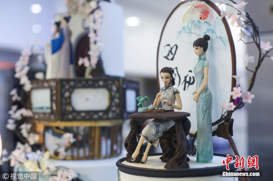 杭州翻糖蛋糕师将白娘子、雷峰塔等杭州文化符号雕刻在翻糖蛋糕上,从最基础的设计和构思,然后动手制作、调色,最后组装,浓浓的“中国风”融合舌尖上的甜美艺术,碰撞出了意想不到的火花。图片来源:视觉中国