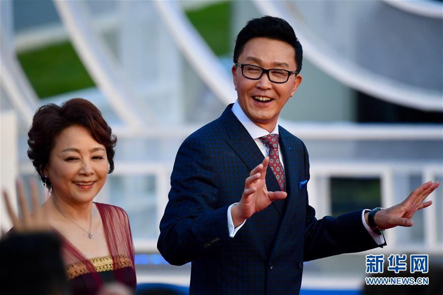 11月23日,吴刚(右)在红毯仪式上。当日,第28届中国金鸡百花电影节红毯仪式在福建厦门举行。新华社记者姜克红摄