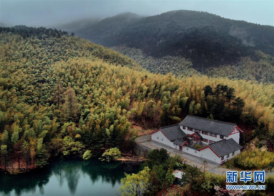 这是3月29日拍摄的云雾缭绕的黄柏山国家森林公园景色(无人机照片)。位于大别山深处的河南省商城县黄柏山国家森林公园,在一场春雨后,云雾缭绕,宛若仙境。新华社记者李安摄