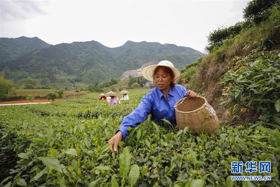 5月17日,村民在新院村茶叶基地采摘夏茶。新华社发(黄伟摄)