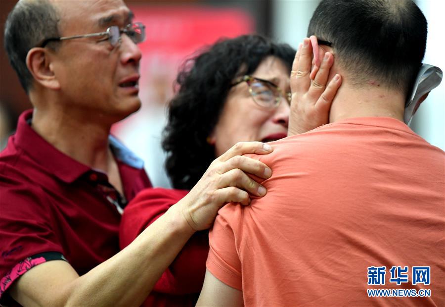 5月18日,李静芝、毛振平(左)与失散32年的儿子毛寅团聚。新华社记者张博文摄