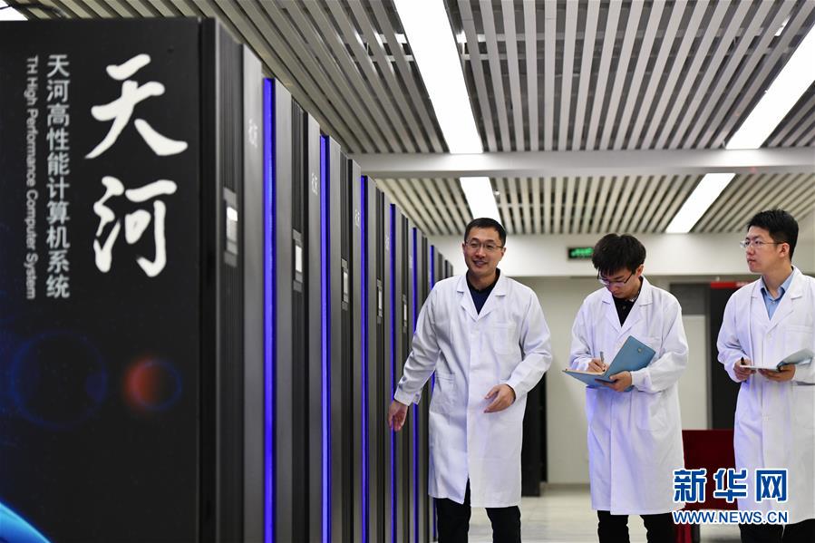 工作人员在国家超级计算天津中心“天河三号”原型机机房内巡查(2019年4月24日摄)。新华社记者李然摄