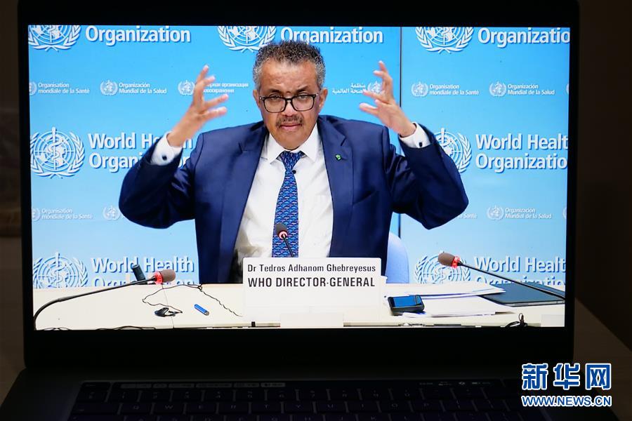 这是6月29日在比利时布鲁塞尔拍摄的世界卫生组织总干事谭德塞在瑞士日内瓦出席线上记者会。世界卫生组织总干事谭德塞29日表示,全球新冠确诊病例累计超过1000万例,死亡病例累计超过50万例,未来数月所有国家将面临与病毒共存的“新常态”。新华社记者张铖摄