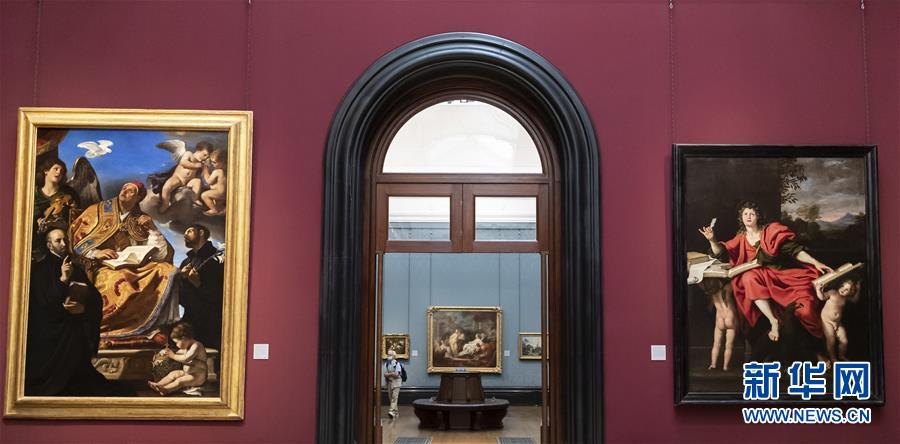 7月4日,参观者佩戴口罩在英国国家美术馆的媒体开放日上参观。受新冠疫情影响而关闭的英国国家美术馆将于7月8日重新对公众开放,成为伦敦首批开门迎客的博物馆、美术馆。参观者需提前网上预约参观时段,全程佩戴口罩且保持安全距离。新华社记者韩岩摄